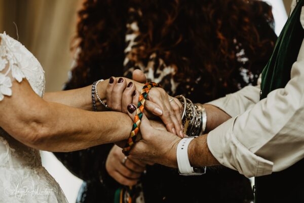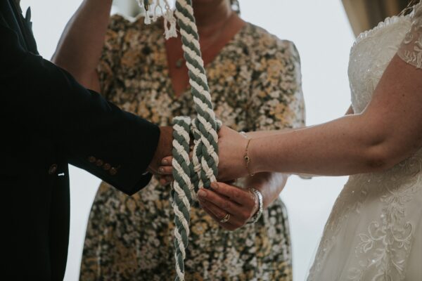 A handfasting is an ancient ritual where a couple’s hands are bound together with ribbons or cords to symbolise unity, commitment and partnership.